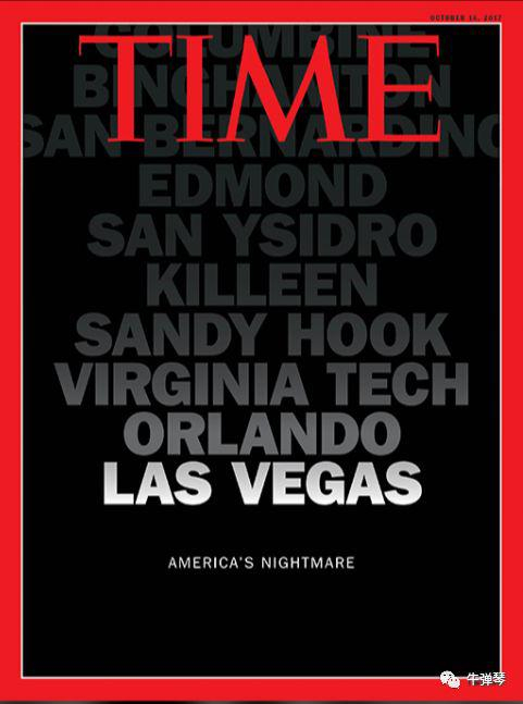 前年10月1日,拉斯维加斯枪击案,50多人死亡,500多人受伤。这真是一场不折不扣的屠杀,这也成为美国史上伤亡最惨烈的一次枪击案。记得当时枪击案后,时代周刊也发了一张照片,也是一系列地名,最近的就是拉斯维加斯。