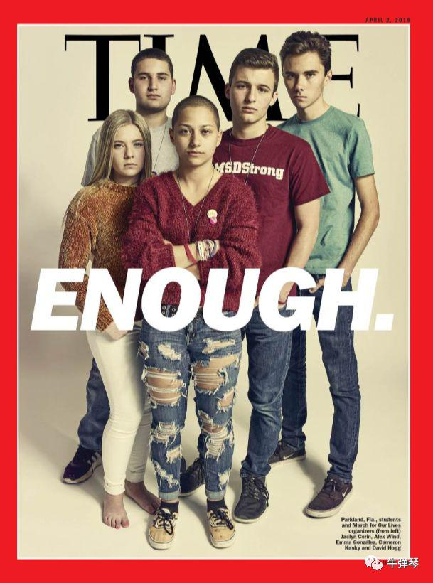 2018年,封面是一次枪击案五名幸存者,标题也是“够了”!