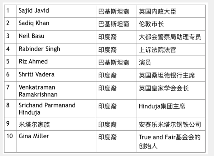 2018年英国GG2 Leadership Awards评选出2018年最具影响力的亚裔,在这份101名获奖者的名单中,没有一位华裔竟进入前十,印巴裔全面“碾压”榜单。
