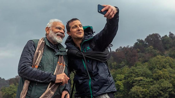 8月12日,探索频道将播出特别版荒野生存节目——印度总理莫迪跟着贝尔在喜马拉雅山麓挑战野外求生。