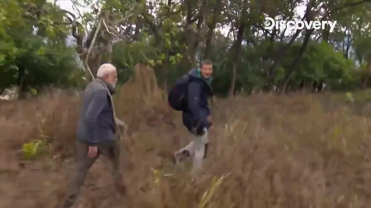 莫迪挑战荒野求生 贝爷传授防老虎技巧