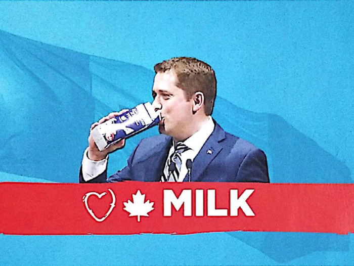 “人类喝了几千年的东西现在突然变得不健康了?荒谬!”最大的反对党党魁安德鲁·希尔(Andrew Scheer)在和奶农的例行见面会上喊道。