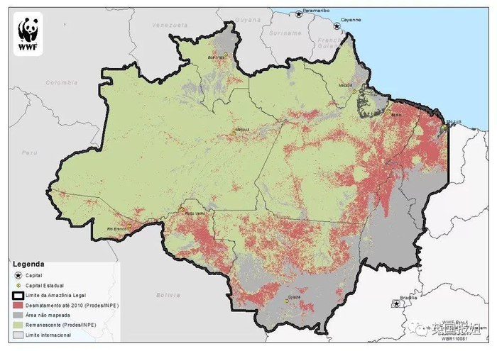 (图:2010年亚马逊的去森林化程度)