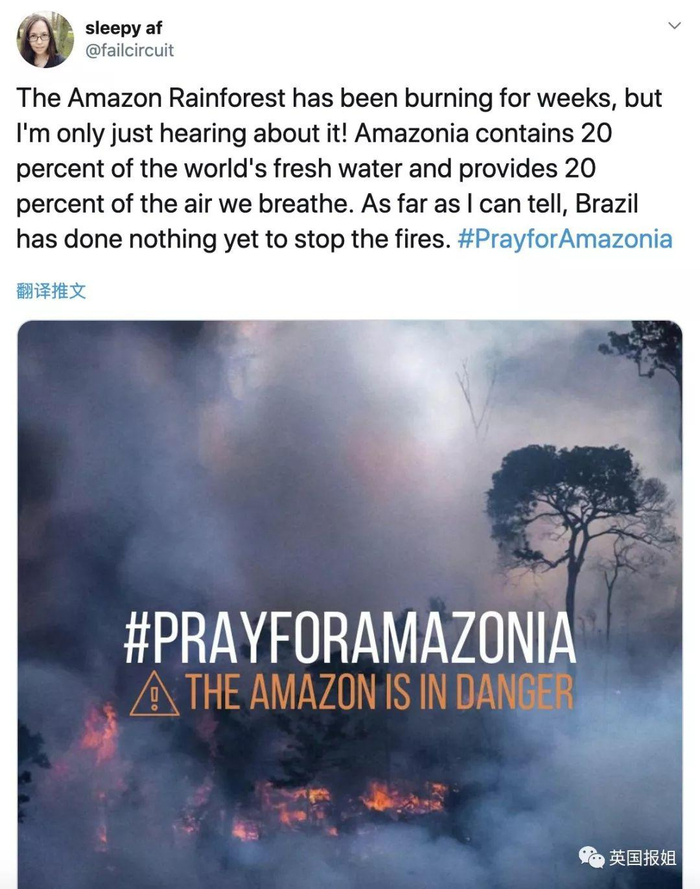 从昨天开始,#为亚马逊祈祷 的话题在推特上突然火了,被巴西网友大量转发以后终于得到了全世界的注意,也终于有媒体开始报道起来。