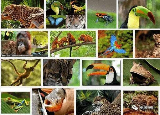 地球上十分之一的动物种族生活在亚马逊雨林,250多万种昆虫,1300多种鸟类,400多种哺乳类动物在这里共同组成了全世界最多样化的生态系统。