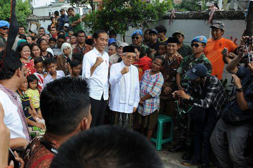 5月21日,印度尼西亚现任总统佐科·维多多(中左)在雅加达参加活动。新华社发(阿贡摄)
