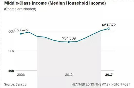 美国普通中产阶级家庭的收入自2012年以来稳步上升,并最终在2017年超过了1999年的水平。近年来,随着越来越多的美国人实现就业,他们的收入也稳步增长。