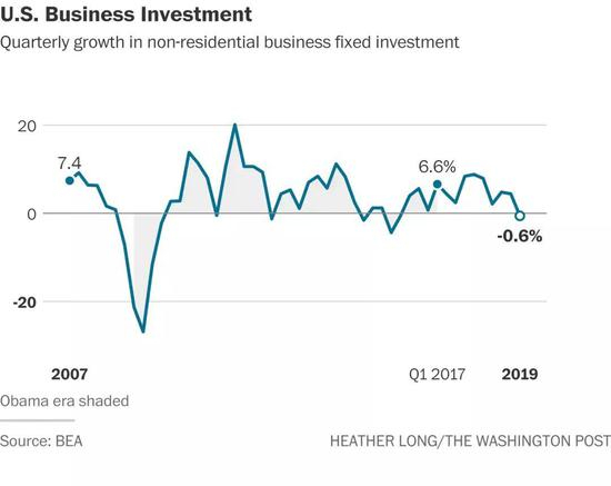 特朗普及其顾问表示,共和党减税政策的目标是鼓励企业增加对新设备和工厂的支出和投资,这将有助于在未来几年提振经济。虽然2018年初企业支出略有上升,但此后由于贸易战的影响,企业支出大幅下降。