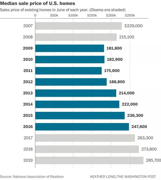 房地产市场是2007年至2008年金融危机的核心,房价在奥巴马任期结束时开始反弹,特朗普上任后继续稳步攀升。
