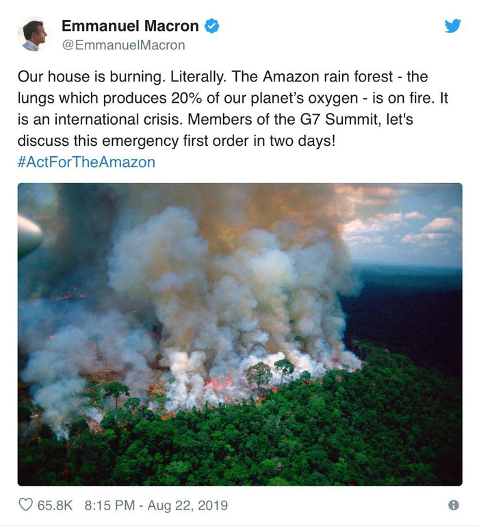 “我们的房子正在燃烧,”这位法国领导人周四在推特上写道。