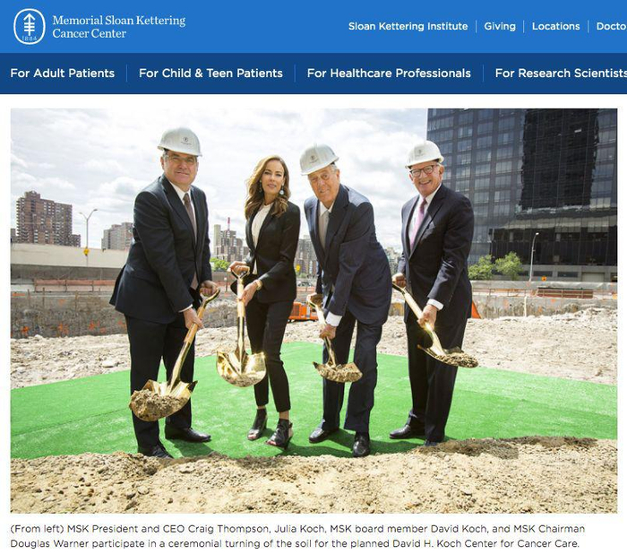 大卫·科赫捐款德州的安德森肿瘤研究中心,也是世界闻名的“斯隆卡特林癌症纪念研究中心(Memorial Sloan Kettering)”的董事。他捐了1.5亿美元,创下该中心收到的单笔最大捐助记录。2019年恰好是他捐款建的这栋楼的竣工时间,无奈,大卫到底没有熬到中心投入运作帮他治好病的这一天。