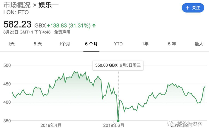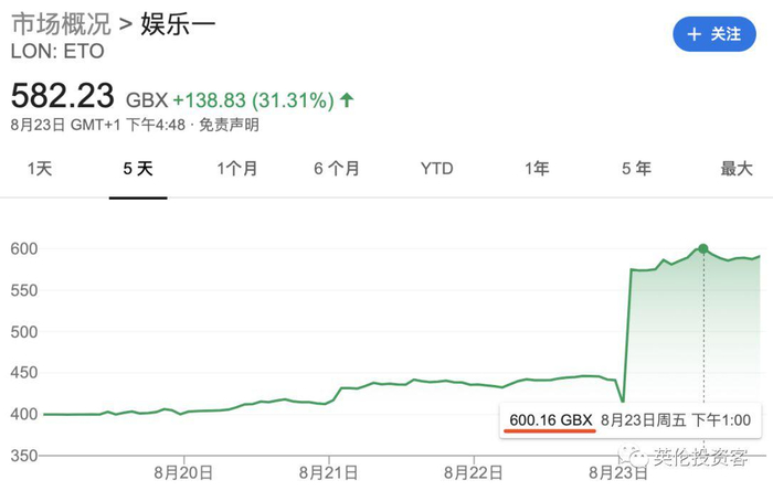 收购消息发布后,eOne的股价瞬间上涨了30%,最高一度飙到每股600便士。