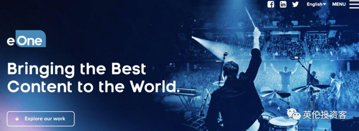 eOne成立于1973年,最初主营音乐零售,经过40多年的扩张后,目前公司旗下业务已经有音乐、电影、电视等业务,且成功在伦敦证券交易所上市。