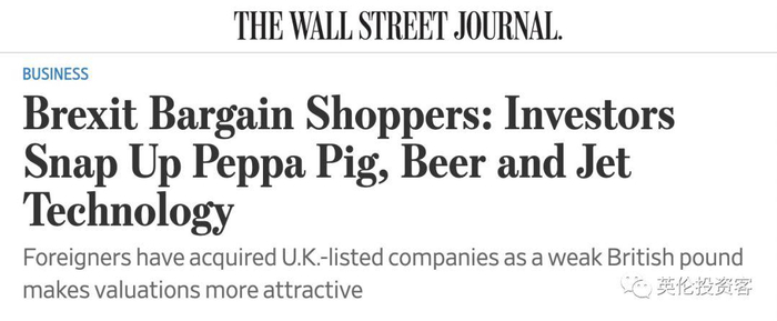对此,美国华尔街日报也刊出标题:《国际投资者趁脱欧来英国捡便宜,买走小猪佩奇、酒吧、飞机技术公司》。