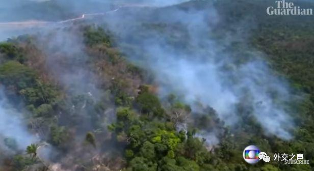 大面积热带雨林正在燃烧。图源:《卫报》视频截图