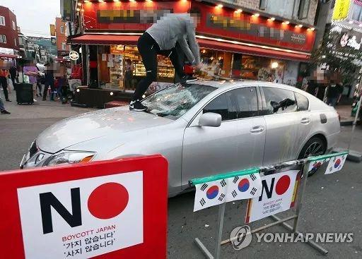 在韩国的这种“气候”下,与旧日本帝国相关的话题每次都会被韩国舆论火上浇油,掀起一股烧日本国旗、花钱买日本汽车砸的怒潮。