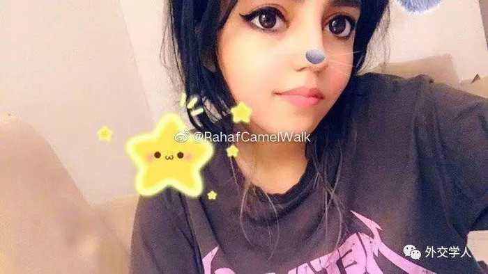 拉哈芙毫不掩饰自己对国家领袖的热爱,方式也直接而“大胆”:使用美颜相机与萨勒曼国王的画像自拍,还给国王和自己的头上都装饰了一圈爱心。