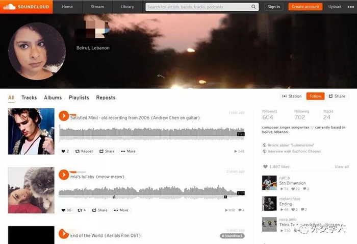 萨拉的SoundCloud主页。
