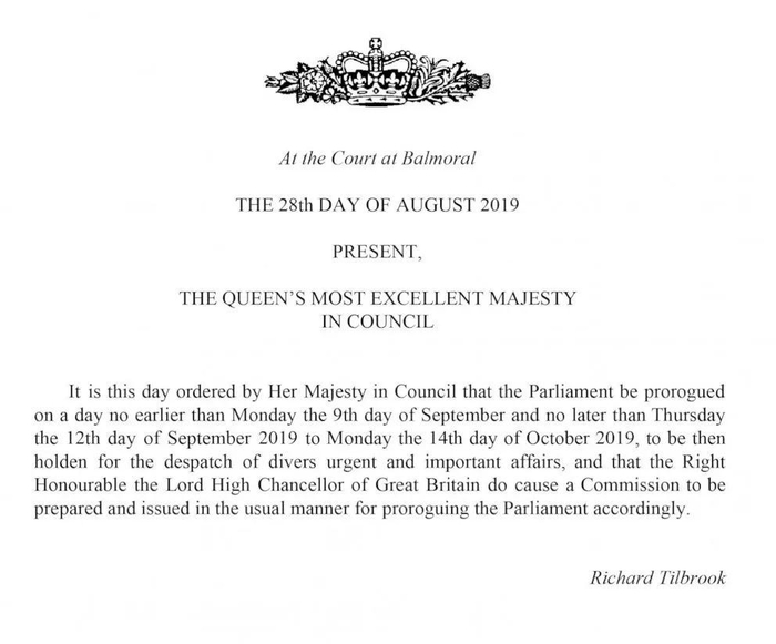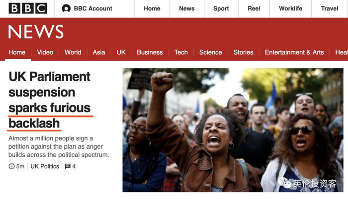 女王同意关闭议会的消息传出后,数以千计抗议人士走上街头,在伦敦、曼彻斯特、爱丁堡等城市发起示威。
