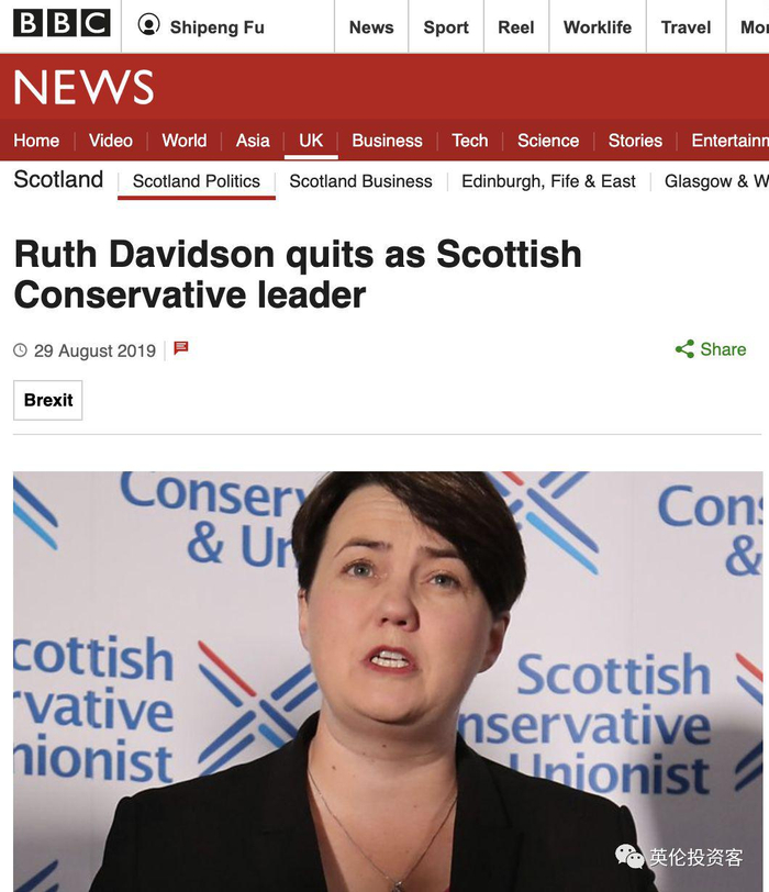 今天(2019年8月29日),又有两名保守党高层因与首相意见向左辞职,分别是上议院保守党党鞭乔治·杨格,和在位8年的苏格兰保守党主席露丝·戴维森,进一步验证了我的判断(为了选票,鲍首相不得不放弃他们)。