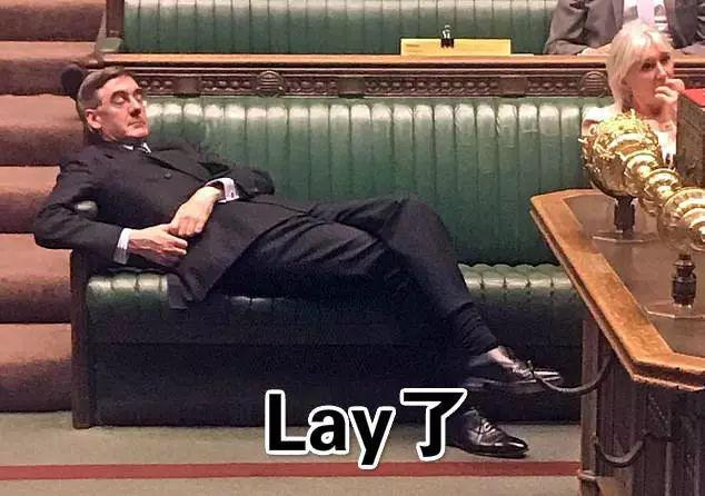 而且这位葛优瘫大爷还不是个小角色。这位躺姿优雅的大爷名叫Jacob Rees-Mogg,是保守党内名气最大的议员之一,也是脱欧活动的重要推动者。