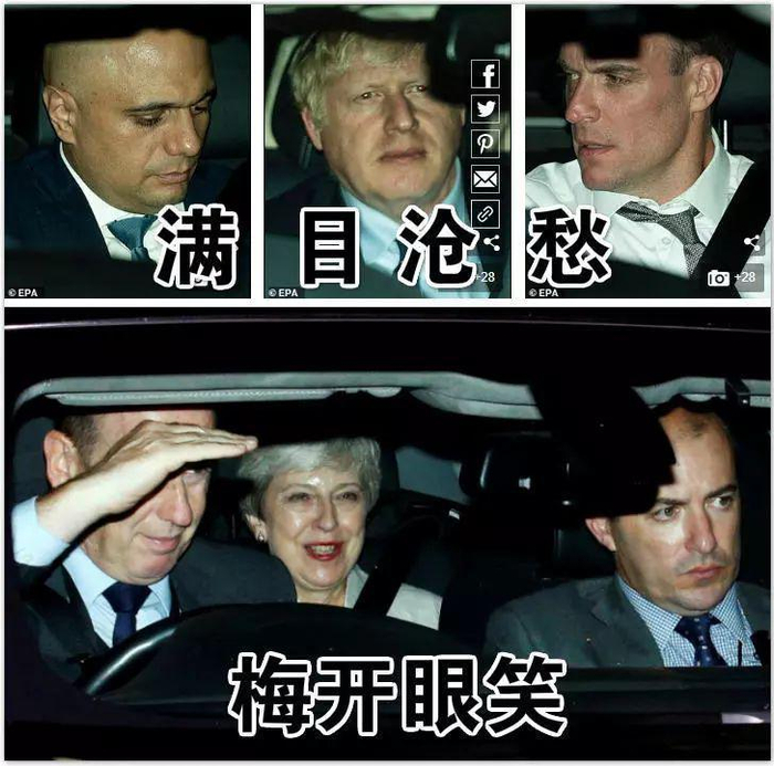 英国媒体也表示,梅姨一天心情都很好,跟左右两边的议员有说有笑,甚至坐车回家时都难掩喜悦,与当天人均丧脸的内阁成员形成鲜明对比
