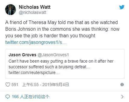 据知情人士报告,梅姨在欣赏完鲍里斯一败涂地的大戏之后表示:现在他知道这工作没想象中那么容易了吧?