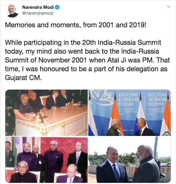 莫迪在推特回顾自己与普京的多次会晤场景。/莫迪推特截图