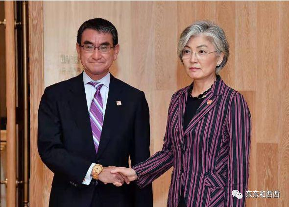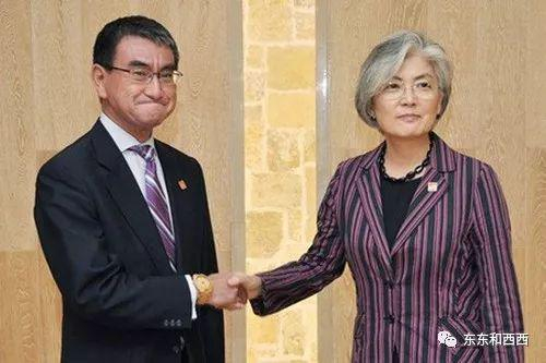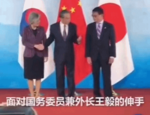 最好玩的是,他上个月下旬来北京参加中日韩外长会,一张普普通通和韩国外长康京和的握手照,在我们看来没啥特别,除了韩国外长像女版文在寅↓↓