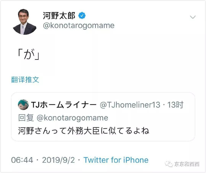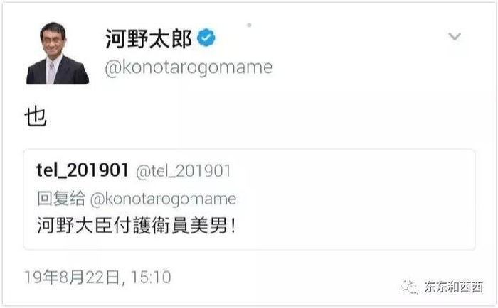 眼看要被键盘侠戳中要害,河野太郎四两拨千斤地回复了一句: