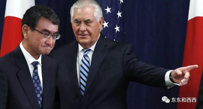 自认为英语不错,跟美国时任国务卿蒂勒森会谈时,提出用英语直接对话,却被美方一口回绝。蒂勒森坚持要用同声传译,据说是他平时聊天时领教了河野的真实英语水平。。。