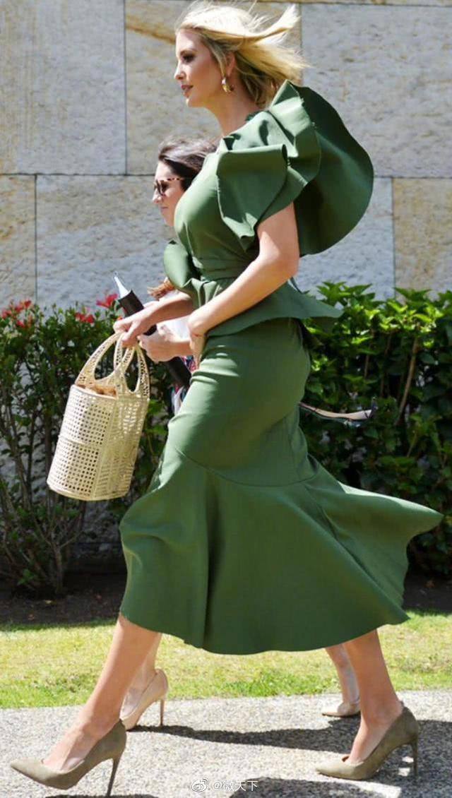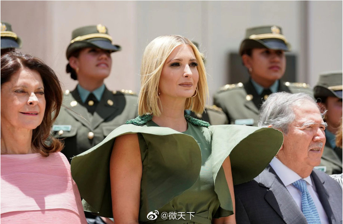 据《华盛顿邮报》9月5日报道,特朗普3日访问哥伦比亚首都波哥大,并在桑坦德国家警察学院会见女警官学员。伊万卡为此行专门选择了价值1650美元(约合人民币1.2万元)的森林绿连衣裙,袖子是扇形样式,下摆长及大腿。没有风之前,一切都很好……但伊万卡的衣袖被风吹起时,她顿时成了一朵“睡莲”。