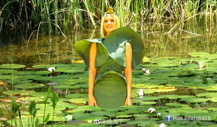 一阵风吹过,伊万卡成一朵“睡莲”