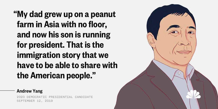 另一段获得美国媒体广泛传播的辩论精华片段,是当杨安泽被问到自己对移民政策的立场,他说到自己的故事:“我的父亲在亚洲的花生农场长大,连地板都没有;现在,他的儿子正在竞选美国总统。这是美国人民所共享的移民故事。”