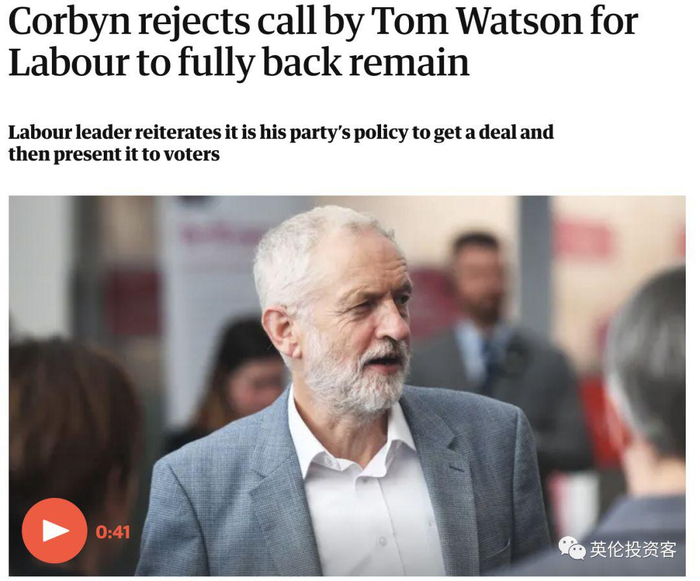 因为脱欧立场问题,英国工党党魁科尔宾和工党副党魁汤姆·沃森彻底决裂,沃森提议让工党变成一个全力支持留欧的政党,力求推翻脱欧;但科尔宾对此作出了明确拒绝,重申工党的立场是寻求一份全新的脱欧协议,再让选民选择。
