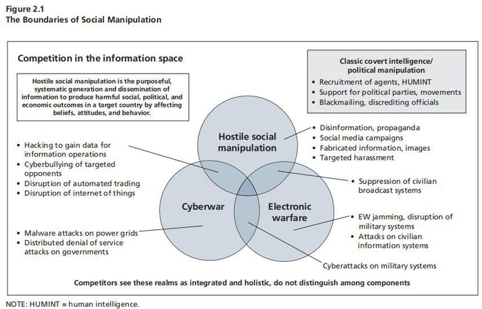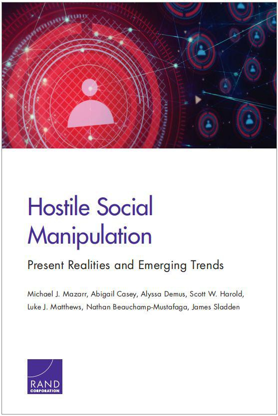 2019年9月4日,兰德公司发布报告《Hostile Social Manipulation-Present Realities and Emerging Trends》,详细介绍了有关信息战的最新研究结果。近年来,信息战在全球战略竞争中的作用愈加凸显。报告认为,不断推陈出新的工具和技术对美国和盟国的国家利益构成了潜在的重大威胁。因此,对中俄两国的信息战现状进行了详细和梳理和介绍,并得出6个重要结论。