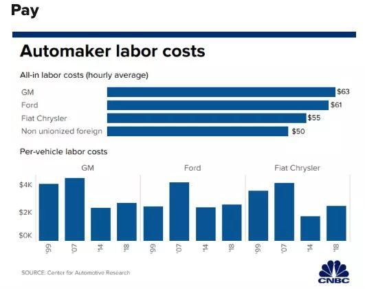 那么为什么福特和克莱斯勒的工人不参加罢工,工会偏偏选择通用汽车呢?原来长久以来,工会每次行动只专注于一个公司。这样容易集中精力达到目的,也增加一次活动的威慑力,起到“杀一儆百”的作用。通用汽车最近三年蒸蒸日上,在北美市场共盈利$350亿美元,但是却把俄亥俄州罗德城(Lordstown, Ohio), 巴尔的摩,以及密歇根州沃伦的工厂关闭。这个做法使得2,800名制造工人失业和成千上万的白领工作丢失。值得一提的是,就在公司大力压缩成本,裁减工人的同时,通用汽车的执行官去年收入达到两千万美元。