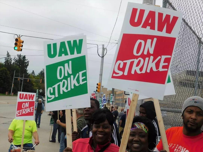 9月16号夜17号凌晨时分五万名通用汽车的工人从密歇根到得克萨斯州的三十一个工厂开始了他们的总罢工。这次罢工的组织者是著名的UAW(United Auto Workers 联合汽车工人工会)。UAW号召工人“停止手上的工作,或者呆在家里。”