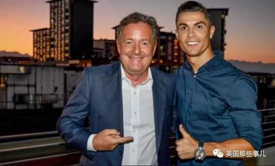 什么大场面都见过的Piers,在等待C罗到来时还是忍不住紧张,见面后C罗从表情到肢体语言都非常亲和,让Piers一下自然了不少,开始和C罗比身高(吹彩虹屁)。