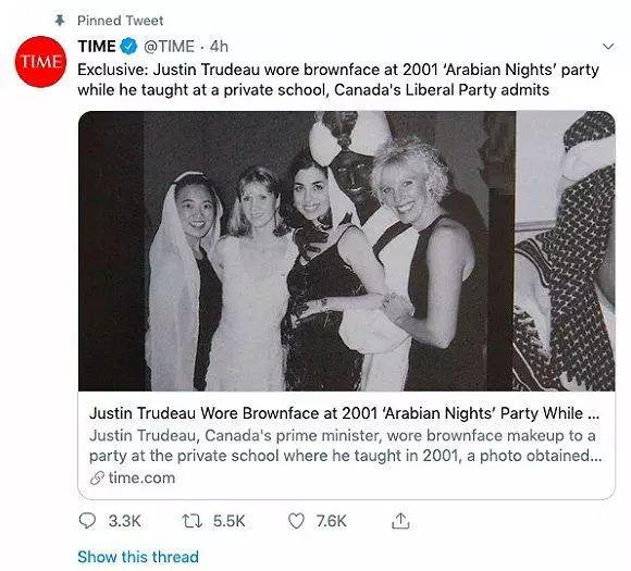 这张具有种族歧视意味的照片,严重打击了特鲁多提倡多元包容与和谐宽容的形象。