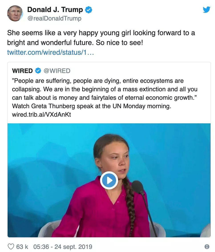 ref:https://www.dailymail.co.uk/news/article-7497371/Trump-mocks-teenage-eco-warrior-Greta-Thunberg-sarcastic-tweet.html