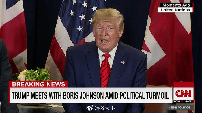 当地时间24日,特朗普和英国首相鲍里斯·约翰逊正在联合国大会会面。有记者提问特朗普为什么停止对乌克兰的援助,特朗普表示,他认为其他国家也应该为乌克兰买单,并反问道:“为什么总是美国出钱?”
