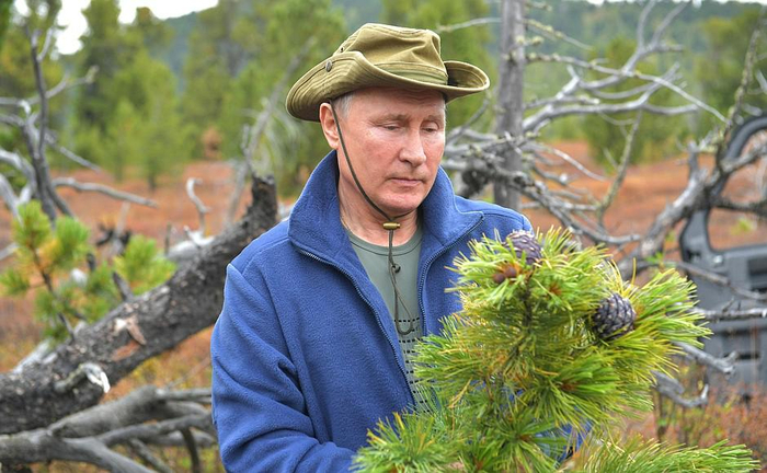 俄罗斯总统官方网站放出了50张照片,包括普京前往了西伯利亚的原始森林,徒步登山欣赏美景、和国防部长绍伊古一起采摘蘑菇的画面,还分享了原始森林的美景。