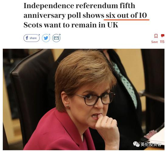 事实上,就在两个多星期前(2019年9月18日),苏格兰刚刚举行了一次民调,调查显示:现在的苏格兰人,10个有6个想留在英国。