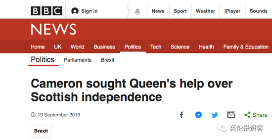 2019年9月19日,前首相卡梅伦在接受BBC专访时表示,在2014年苏格兰独立公投的前几天,他去找了女王,希望女王对苏格兰独立公投有所表示。