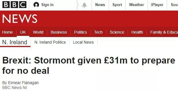 BBC:Stormont获资3100万英镑,应对无协议脱欧