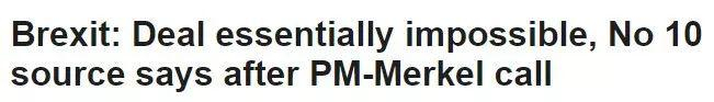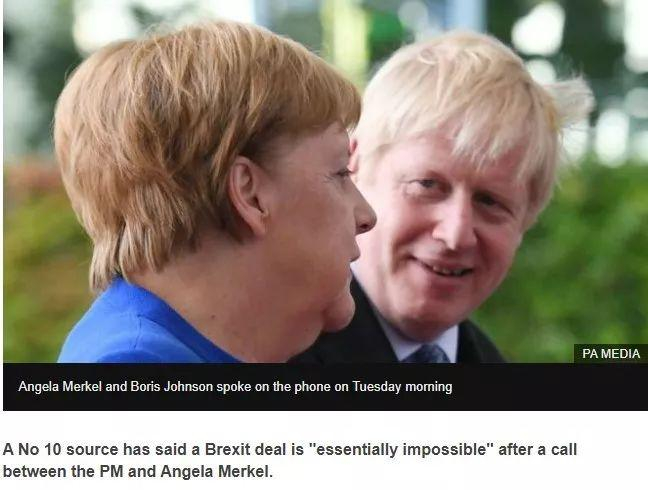 BBC:首相府消息表示,Boris和默克尔通话后,要达成脱欧协议的可能性微乎其微。
