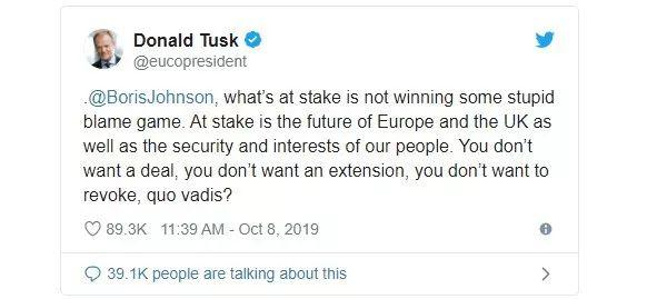 欧洲理事会主席Tusk直接发推开怼: