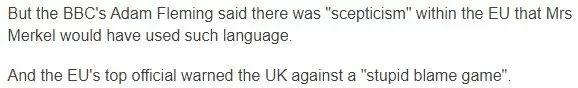 据BBC原因首相府信息的说法,Boris和默克尔这通电话打得非常不愉快。礼貌地说,是“双方交换了意见”,其实就是Boris交给欧盟的提案被默大妈否了。