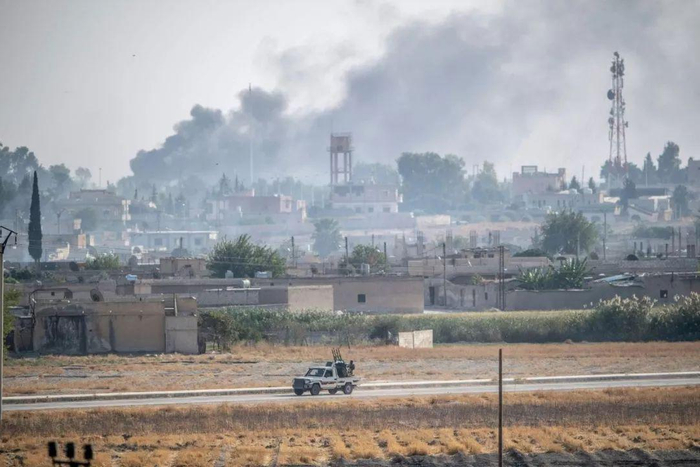 △ 10月13日,叙利亚军车在叙利亚北部边境城镇泰勒艾卜耶德。
